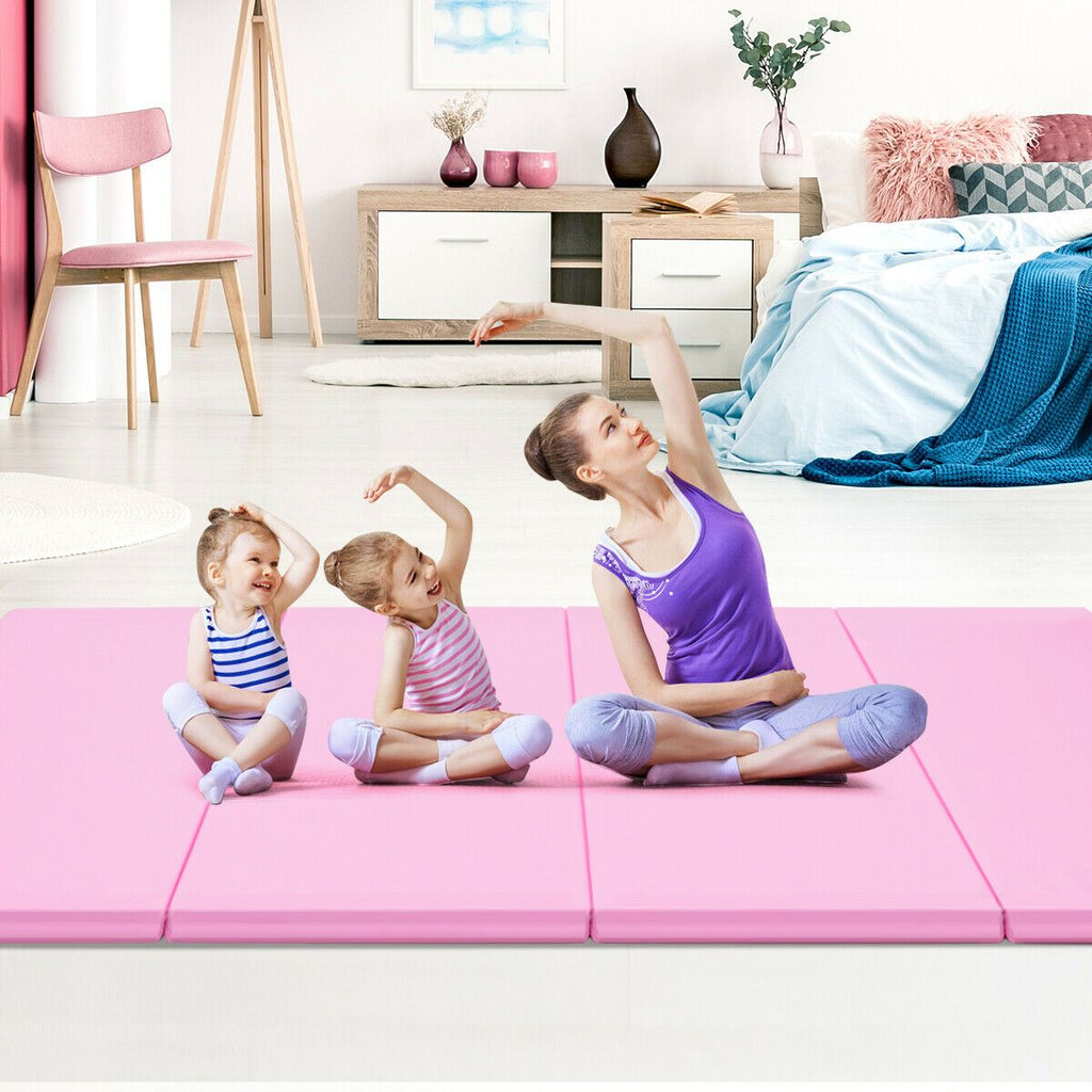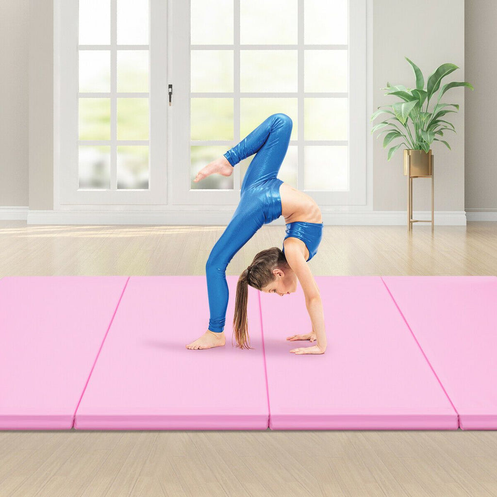 4' x 8' x 2'' Foldable Gymnastics Mat Four Panels Gym Mat with PU Leather and EPE Foam Blue/Pink